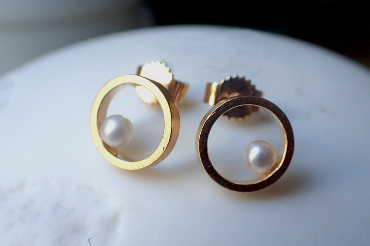 *En la fabricación de joyas, las perlas suelen pegarse a las piezas. En este caso, la perla no solo se pega al lateral del disco de oro, sino a un alfiler de oro que se inserta en su interior. Esto maximiza el contacto superficial para mayor seguridad.